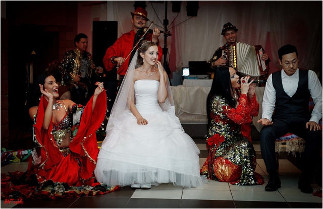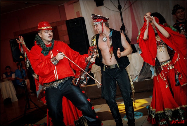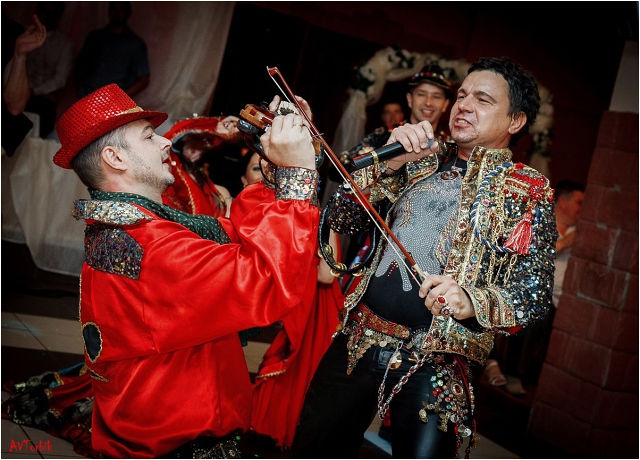 Свадьба по-цыгански — праздник, который подарит молодожёнам и гостям цыганский коллектив Кустурица. Ансамбль цыган Кустурица собран из профессионалов, известных артистов давно полюбившийся зрителям своими песнями и плясками. Основу репертуара цыганского ансамбля составляют яркие, зажигательные таборные пляски, задушевные мелодичные песни и цыганская музыка. Цыгане Минска на свадьбу всегда ориентируется на пожелания и вкусы всех гостей банкета. Руководитель коллектива Руслан Кустурица сохраняет верность цыганским народным традициям, а его ансамбль один из лучших в Минске и Беларуси работает в стиле завораживающего шоу цыган. Ансамбль Кустурица поразит Вас классическими национальными нарядами и лихостью аранжировок. Цыганское шоу Кустурица достойно выступает не только в Белоруссии, но проводит концерты и гастроли за рубежом.